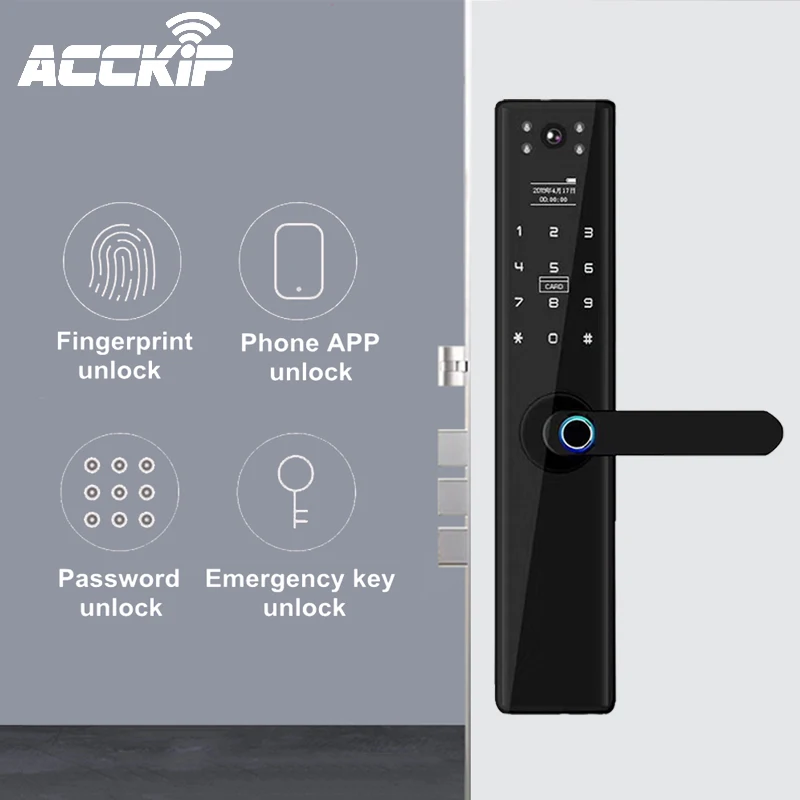 Home » hot product , nest price , smart electronic » New ACCKIP Wifi Electronic Door Lock With Remotely Biometric Fingerprint Smart Card Password Key Unlock